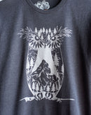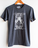 Gorgeous trompe d'oeuil print. From afar, you see an owl, but close up is a fantastically detailed mountain scene. Makes a great addition to a t-shirt collection!